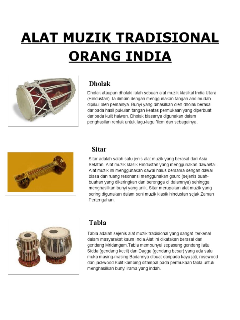 Setiap bangsa seperti cina, melayu dan india mempunyai gendang dengan nama yang tersendiri.